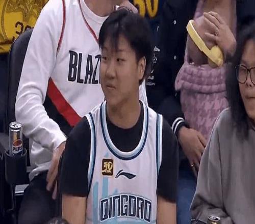 首节还剩8分11秒,杨瀚森便替补登场,迎来了自己的NBA季前赛首秀,场边的中国球迷纷纷为他欢呼鼓掌,其中有一位中国球迷身穿杨瀚森青岛球衣前来助阵。