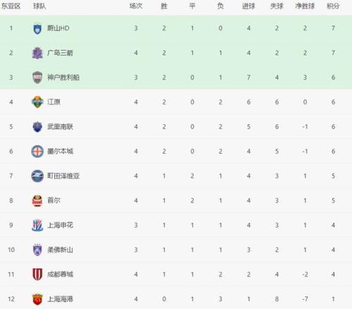 在亚冠东亚区的积分榜上,排名第1的是蔚山HD,2胜1平拿到7分。广岛三箭也是7分,排名第2。中超的3支球队都不在前8,处于淘汰区。上海申花只踢了3场,1胜1平1负,拿到4分,排名第9。成都蓉城踢了4场,1胜1平2负,拿到4分,排名第11,也就是倒数第2。上海海港最耻辱,1平3负,只拿到1分,排名垫底。中超的3支强队在亚冠赛场就是一个大笑话,战绩惨不忍睹,丢人现眼。