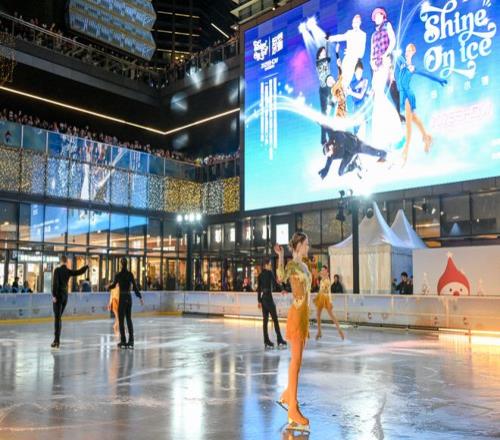 上海陆家嘴中心L+Mall下沉广场变身冰雪舞台,来自欧美及中国的顶级冰舞艺术家,联袂花样滑冰世界奥运选手、冠军名将陆续登场,冰刃划出的光影在透明冰面上交错闪动,脚边跃起的冰屑与舞者擦身而过的风声交织在一起,营造出极具沉浸感的观演氛围。整场冰舞表演让广场化为一个具备真实质感的“沉浸式冬季剧场”,也让这座城市广场成为浦东今冬最引人注目的风景之一。