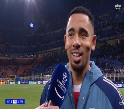 欧冠联赛阶段第7轮,阿森纳客场3-1战胜国米,本场比赛梅开二度的热苏斯赛后接受了亚马逊频道的采访。